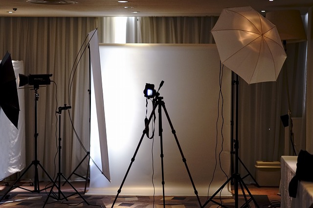 この写真ではカーテンが一部開いていますが、撮影時は閉じて行います。