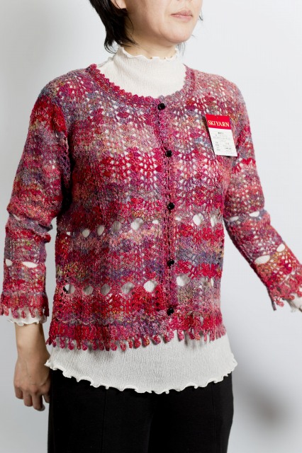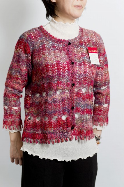 2柄直線編みのカーディガン