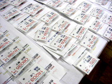 受付で名前入りの購入表と名札を差し上げます。
